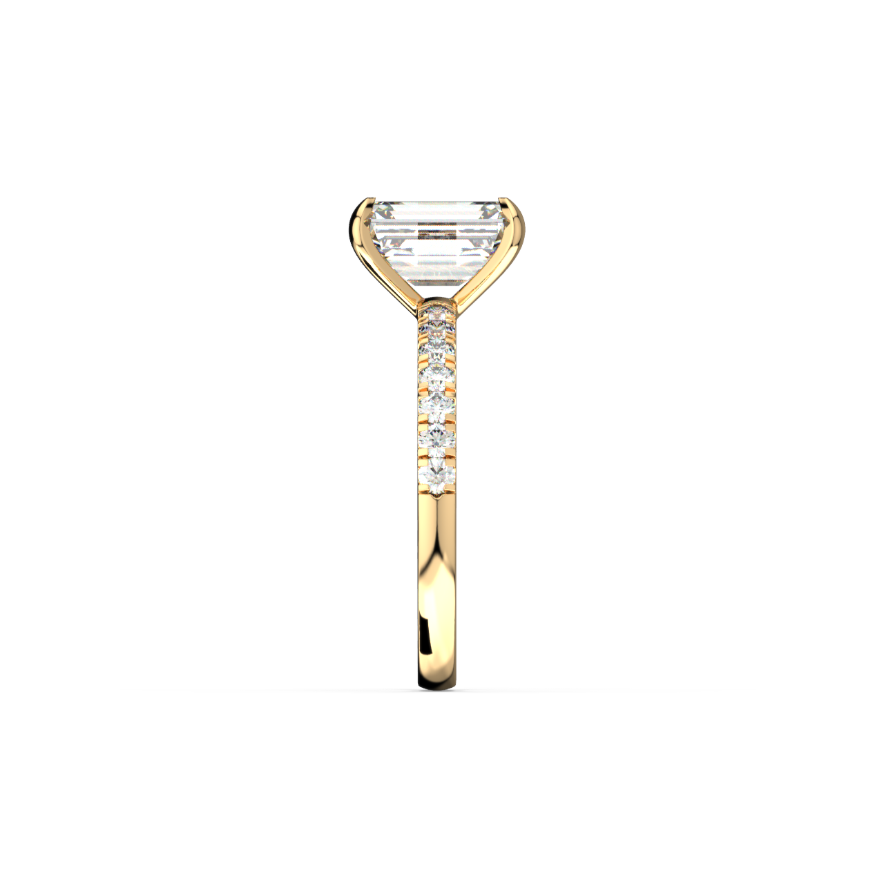 Experience a ring that sparkles from every angle. Our Emerald Pave Diamond Ring features a stunning center diamond, elegantly complemented by a continuous line of small, brilliant diamonds set along the band. The meticulous pave setting creates a surface of uninterrupted sparkle, making the ring appear larger and more radiant.